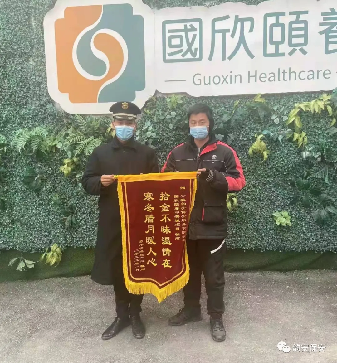 2022年1月6日下午,順豐快遞的快遞員趙廣仁興匆匆地趕到安徽韻安保安服務(wù)有限公司山金中澳城安保項目駐地,送來一面錦旗,錦旗上寫道:“拾金不昧溫情在,寒冬臘月暖人心”,對公司保安員徐炫急他人所急,想他人所想的拾金不昧舉動表示衷心的感謝。
